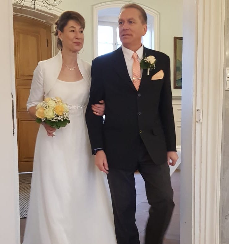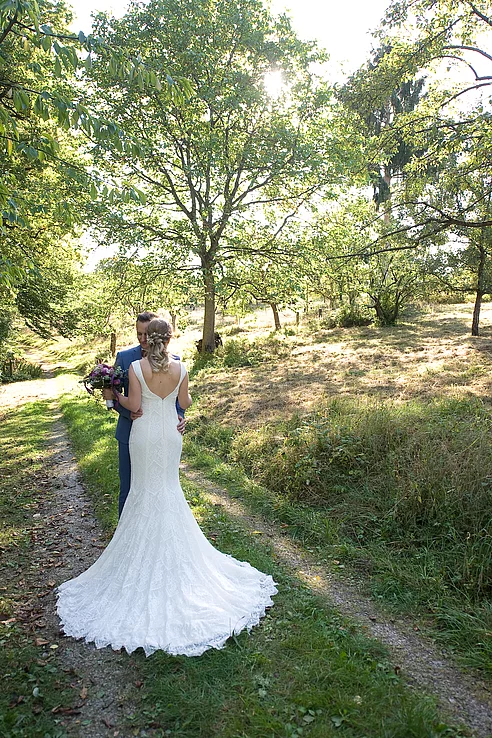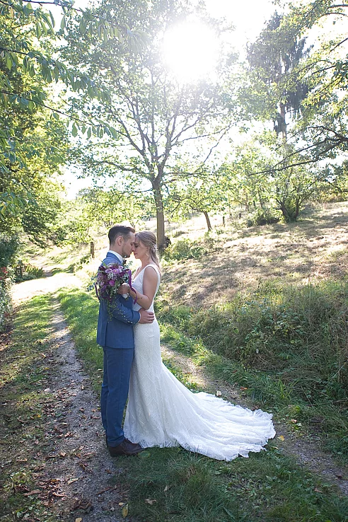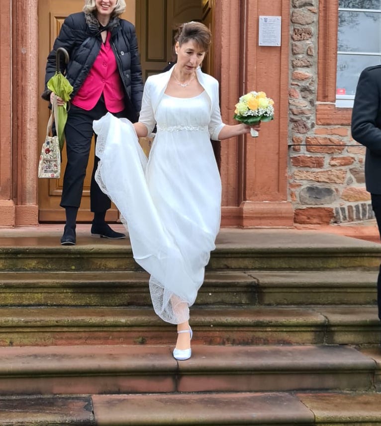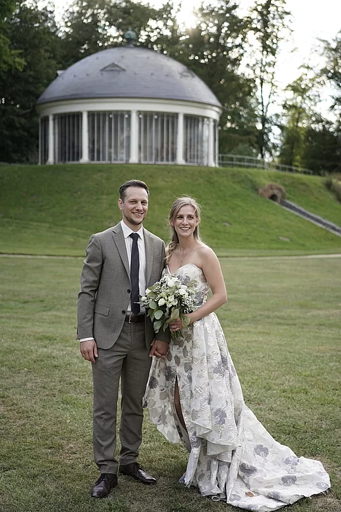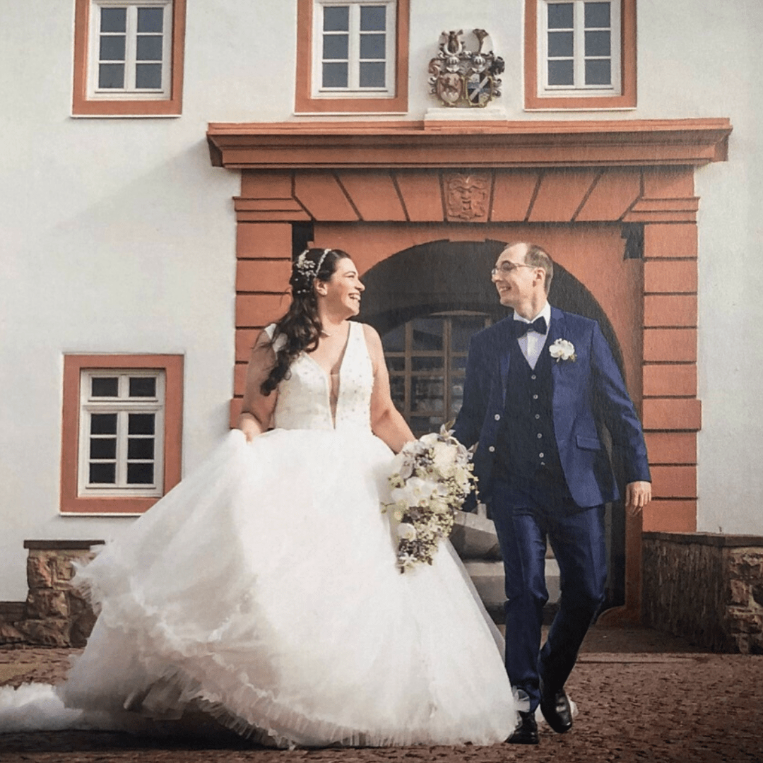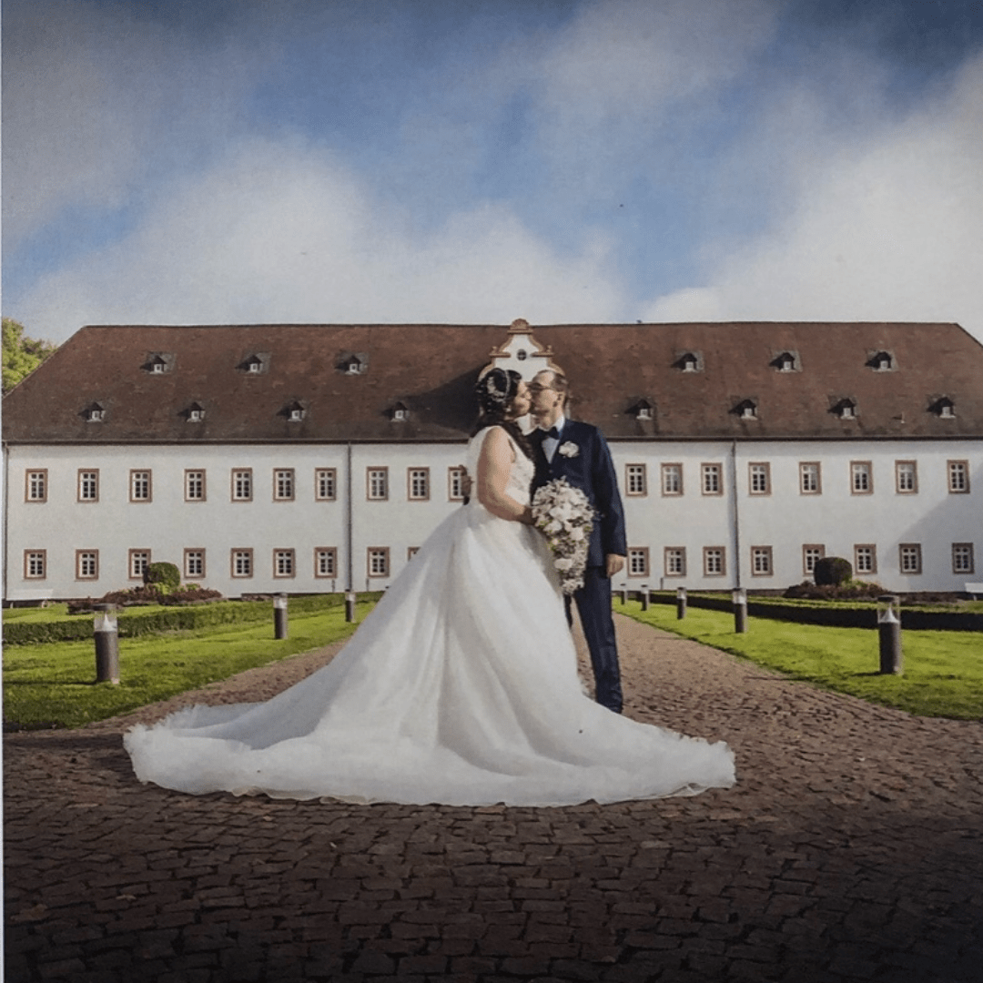 „Als ich meinen Ehemann kennenlernte, war es Liebe auf den ersten Blick. Ich war mir direkt sicher, ihn möchte ich mal heiraten. Ca. 13 Jahre nachdem wir uns kennen lernten, machte er mir auf einer Rundreise durch Amerika in einem Nationalpark bei einer Wanderung den Antrag. Ein gutes Jahr später, im September 2019 heirateten wir standesamtlich im wunderschönen Schloss Philippsruhe in Hanau und knapp eine Woche später noch kirchlich mit der anschließenden Hochzeitsfeier.