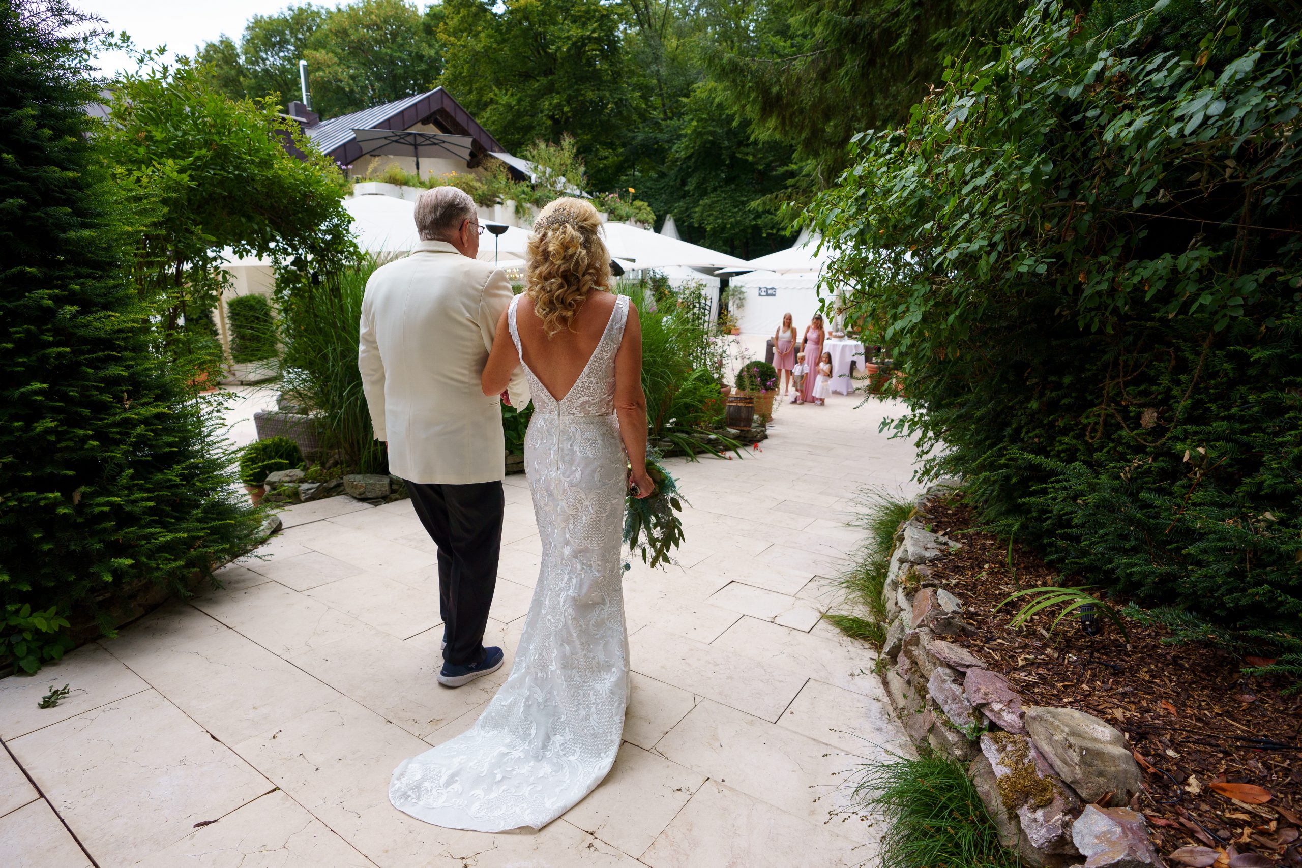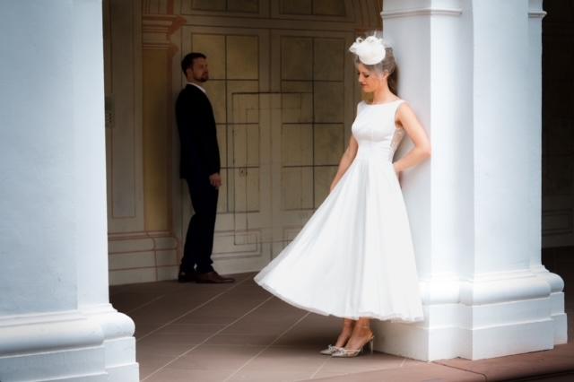 Nach einer langen Wartezeit durch die Coronapandemie konnte der Traum nun endlich in Erfüllung gehen und der Hochzeit mit dem wundervollem Fascinator und dem Traumkleid, das nach Evas eigenem Design in Anlehnung an die 50er Jahre von der Modedesignerin Semiha Bähr entworfen wurde, stand nichts mehr im Wege. Die freie Trauung unseres Traumpaares fand in der wunderschönen Hochzeitslocation „Hofküche Wilhelmsbad“ in Hanau statt.